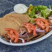 1 Regular Portion of Gyro & 1 Skewer Marinated Charbroiled Premium Sirloin Tips/Greek Salad/Dolma/Pita/Onions/Tomatoes/Tzatziki