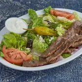 Double Portion of Marinated Charbroiled Premium Sirloin Tips/Greek Salad/Dolma/Pita/Onions/Tomatoes/Tzatziki