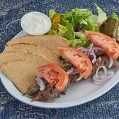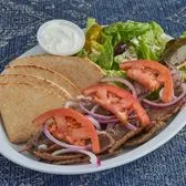 Double Portion Rotisserie blend of Beef & Lamb/Greek Salad/Dolma/Pita/Onions/Tomatoes/Tzatziki