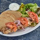 1 Regular Portion of Gyro & 1 Skewer Marinated Charbroiled Chicken Breast Tenders/Greek Salad/Dolma/Pita/Onions/Tomatoes/Tzatziki