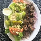 Double Portion of Marinated Charbroiled Premium Lamb Tips/Greek Salad/Onions/Tzatziki