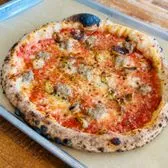 San Marzano tomato sauce, sausage, pepperoni, garlic, Scamorza, Mozzarella di Bufala, Pecorino Romano. No substitutions. All pizzas slightly charred and well done.
