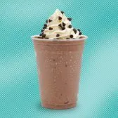 Chocolate Chip cookie blended with chocolate ice cream. Topped with whipped cream and chocolate chips.