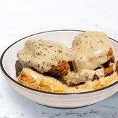 two house buttermilk biscuits with fried cage free chicken & house gravy