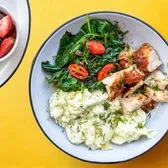 vital farms egg whites, sautéed spinach, tomatoes, and red onion, grilled chicken, dill, & side of seasonal fruit