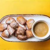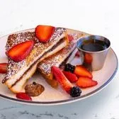 Thick cut pain de mie dipped in vanilla custard with nutella, berries & powdered sugar