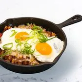 bhr pork sausage, skillet potatoes, jalapeños, onions, peppers, scallions, gruyere, gravy & sunny side eggs