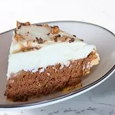 Rich Ghirardelli chocolate mousse inside of our all butter bottom crust, layered with crunchy heath bar pieces and butter caramel. Topped with slightly sweet real whipped cream and heath bar pieces.