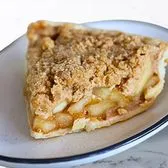 Sugar roasted apples with a hint of cinnamon and nutmeg served in an all butter bottom crust with Dutch streusel topping and butter caramel drizzle.