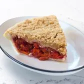 Slightly Tart Michigan cherries layered with sugar and cinnamon and baked in an all butter bottom crust with Dutch streusel topping.
