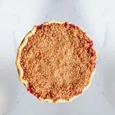 Slightly Tart Michigan cherries layered with sugar and cinnamon and baked in an all butter bottom crust with Dutch streusel topping.