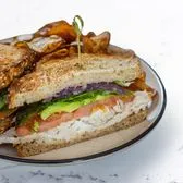 chicken salad & organic greens on toasted multigrain [mayo • mustard • golden raisins • onions • pecans • apple]