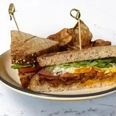 bacon, organic greens, sliced tomato, over easy vital farms egg* & garlic aioli, toasted multigrain
