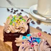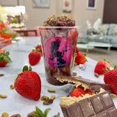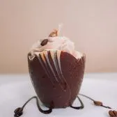 chocolate tulip cup filled with delicious brownie and topped with a smooth mousse.