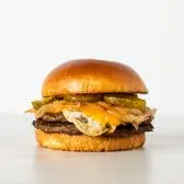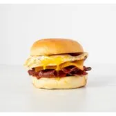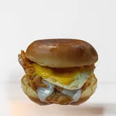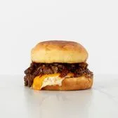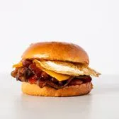 Thick-cut smoked bacon, cage-free over medium egg, cheddar cheese and our signature Mexican sauce in a warm brioche bun.