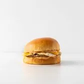 Cage free scrambled eggs, cheddar cheese on a warm brioche bun