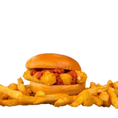 Chicken Fingers + Jalapeños + Ranch served on a brioche bun, stacked with value fries on the side