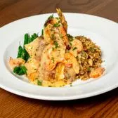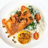 Marinated cherry tomatoes, beurre blanc served with your choice of two sides. We recommend mashed potatoes and garlic wilted spinach