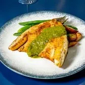Chimichurri served with your choice of two sides. We recommend garlic herb potatoes and sautéed green beans