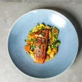 Marinated cherry tomatoes, beurre blanc served with your choice of two sides. We recommend mashed potatoes and garlic wilted spinach