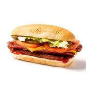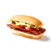 All-beef hot dog, split and grilled lengthwise for a caramelized exterior, American-style cheese on top, a layer of applewood smoked bacon and any of your favorite toppings.