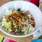 Flores guacamole with queso fresco, pico de gallo and pepita seeds