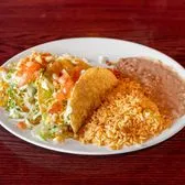 Crispy beef taco, beef chalupa, cheese enchilada, rice and your choice of beans