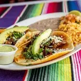 Two soft beef or chicken fajita tacos with bell peppers and onions, guacamole, pico de gallo, rice and your choice of beans Gluten friendly if order with gluten free tortillas