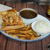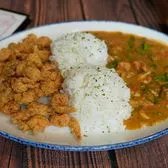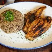 1 catfish filet, 4 fried shrimp, 2 hushpuppies. Served with chicken & sausage jambalaya