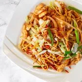 Stir fried noodles with bean sprouts, cabbage and carrots