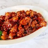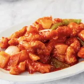 Crispy chicken breast with onions, bell peppers, pineapples, and sweet & sour sauce