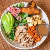Agave-Lime Chicken, Power Greens, Sweet Potato, Adobo Chickpeas, Avocado, Roasted Cauliflower, Pickled Red Onion w/ Sherry Shallot Vinaigrette