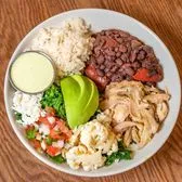 Pulled Achiote Chicken, Tender Kale, White Rice, Black Beans, Avocado, Spicy Escabeche, Pico de Gallo, Queso Fresco w/ Poblano Ranch