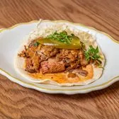 Pulled Achiote Chicken, Guacamole, Cabbage, Grilled Onion, Cotija, Cilantro, Spicy Jalapeño Salsa, Corn Tortilla