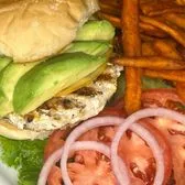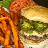 Hamburger patty seasoned with crushed red pepper on a fresh baked bun. Topped with grilled jalapeños, grilled onions, & melted jack cheese. Served with green leaf lettuce, tomato & chipotle mayo on the side. Add Avocado for an extra charge. Served with a side of your choice. *Make GLUTEN FREE: Substitute GF Bun