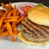 Choice of patty on a fresh baked bun with green leaf lettuce, red onion, tomato & mayo. Served with a side of your choice. *Make GLUTEN FREE: Substitute GF Bun