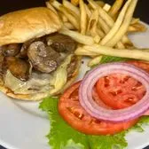 Hamburger patty on a fresh baked bun with sautéed mushrooms & gruyere swiss cheese, green leaf lettuce, red onion, tomato & mayo. Served with a side of your choice. *Make GLUTEN FREE: Substitute GF Bun