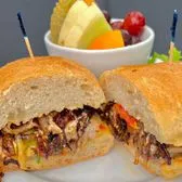 Marinated grilled steak, cherry tomato relish, Gruyere cheese, fried onions with whole grain mustard aioli on a ciabatta roll. Served with a side of your choice. *Contains GLUTEN