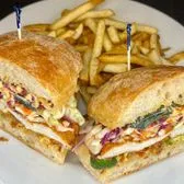 Fried chicken breast topped with cabbage slaw, fresh jalapenos, homemade pickles and chipotle mayo on ciabatta bread. *Contains GLUTEN