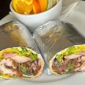 Grilled chicken, cheddar cheese, pico de gallo, black beans, green leaf lettuce & chipotle mayo. Add avocado or Bacon for an extra charge. Served with a side of your choice. *Make GLUTEN FREE: Substitute GF Tortilla