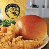 Chicken, single side, 30 oz drink, fresh-baked roll.