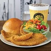 Golden tenders, gravy or sauce, single side, 30 oz drink, fresh-baked roll.