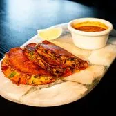 Three grilled tacos stuffed with beef Birria, cheese, cilantro, & onions and served with a side of homemade Consome dipping sauce. Served with homemade Rice and Refried Beans