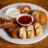 Check it: 3 Raviolis, 3 Cheese Bites, and 3 Pizza Poppers. Comes with Ranch & Marinara for dipping.