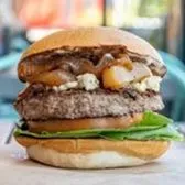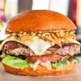 Our super premium wagyu beef blend cooked medium rare, Roasted Garlic A1 Aioli, tomato, spinach, Swissh & Frech-fried onions.