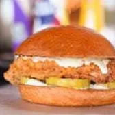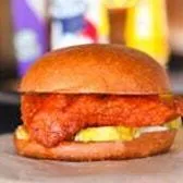 Crispy, double battered fried chicken breast, pickles and jalapeno ranch.