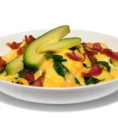 bacon, sausage, potato, tomato, spinach, cheese, grilled onions or avocado (+.50).