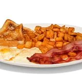 Vital Farms pasture-raised eggs, potatoes, toast, choice of bacon or sausage.
