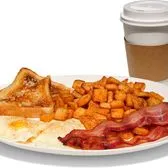 Vital Farms pasture-raised eggs, potatoes, toast, choice of bacon or sausage.