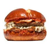 Two all-beef patties, pepperoni slices, shredded mozzarella, and Italian spices, topped with Michael’s of Brooklyn legendary pizza sauce. Served on a buttery, garlicky pretzel bun.